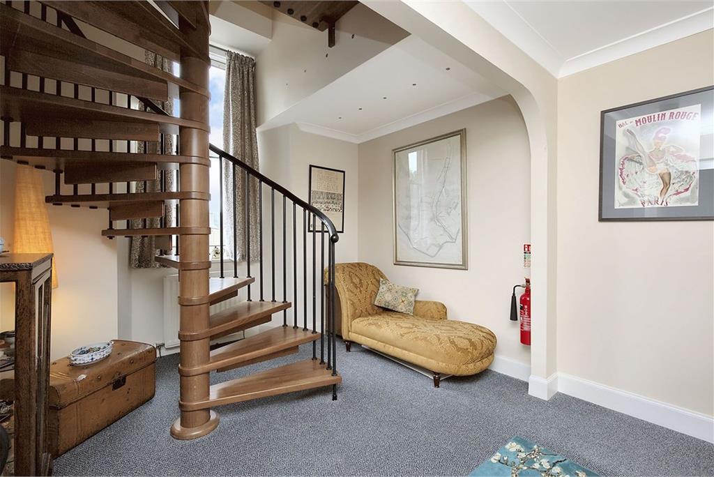 A separate small kitchen/utility room on the first floor offers a discrete separate space for laundry appliances. The first floor is also home to a large reception room, offering ample space for a choice of furniture layouts to suit the new owner's needs. The room is filled with sunny natural light through twin southeast-facing windows.